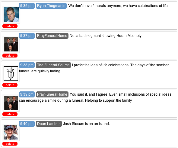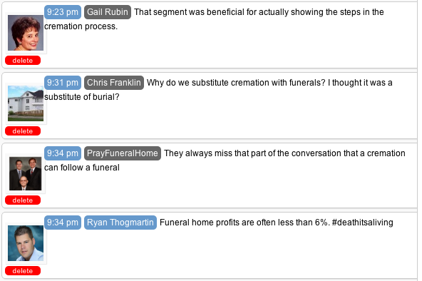 Here are some of the comments made by funeral professionals during the ConnectingDirectors.com live chat and on Twitter using #deathitsaliving: