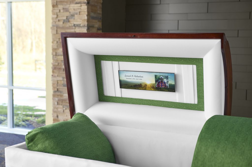 • LifeStories® Interiors: New customizable casket interiors – including the overthrow, pillow sham, and cap panel frame – feature themed designs, colors, or elements that can be easily installed on-site by the funeral home. The interior components arrive with the casket on the next scheduled delivery, significantly reducing the time needed to accommodate personalization before the service.