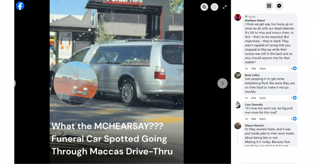 Last week a video of a hearse pulling through a McDonald’s drive-thru in Australia went viral because a casket with a full floral blanket (and thus assumed to be occupied) was clearly visible through the back glass. As the TikTok post was shared across platforms, some of the responses were expectedly rude; there were plenty of the “how disrespectful” and “he was dying for a Mickey D’s ha ha” comments. However, most of the folks who posted their thoughts shared a different kind of story — and Connecting Directors readers probably aren’t surprised.